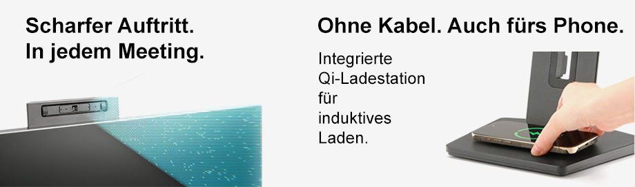 • Wireless Charging – Smartphone-Ladefläche direkt im Standfuß